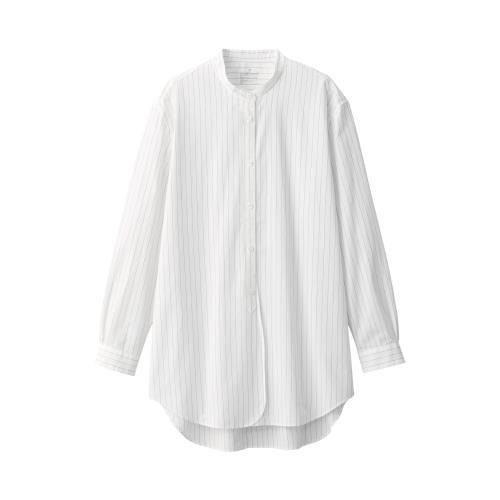 無印良品 婦人 洗いざらし ブロード スタンドカラー長袖ロングシャツ レディース BC2JYA4A アイボリーストライプ 婦人S