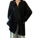 [NONELECEDOLE]ニットセーターレディーストップスストライプ厚手長袖ミディアム丈ゆったり着痩せレトロだるい風大人シンプル暖かいカジュアルデート通勤秋冬