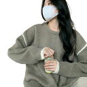 [NONELECEDOLE]ニットセーターレディース丸首トップスプルオーバー体型カバー長袖ゆったり着痩せ切り替え大きいサイズカジュアル快適暖かい普段着だるい風お出かけ通勤秋冬
