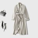 コート レディース 春 立襟 ロング丈 ポリエステル ゆったり ミドル丈 ベージュ系 体型カバー 通勤 韓国 エレガント(x2)