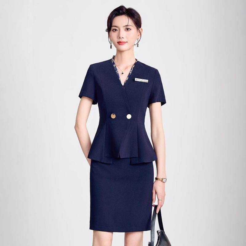 ユニフォーム レディース エステ サロン マッサージ セラピスト 制服 セットアップ スリット ラップ プリーツ スカート 上品 セクシー 春夏 ブルー ブラック グレー ネイビー