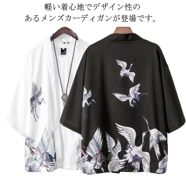 羽織 カーディガン メンズ 薄手 夏服 サマーカーディガン 七分袖 はおり 甚平風 涼しい ビッグシルエット 無地 夏物 夏用 大きいサイズ お兄系