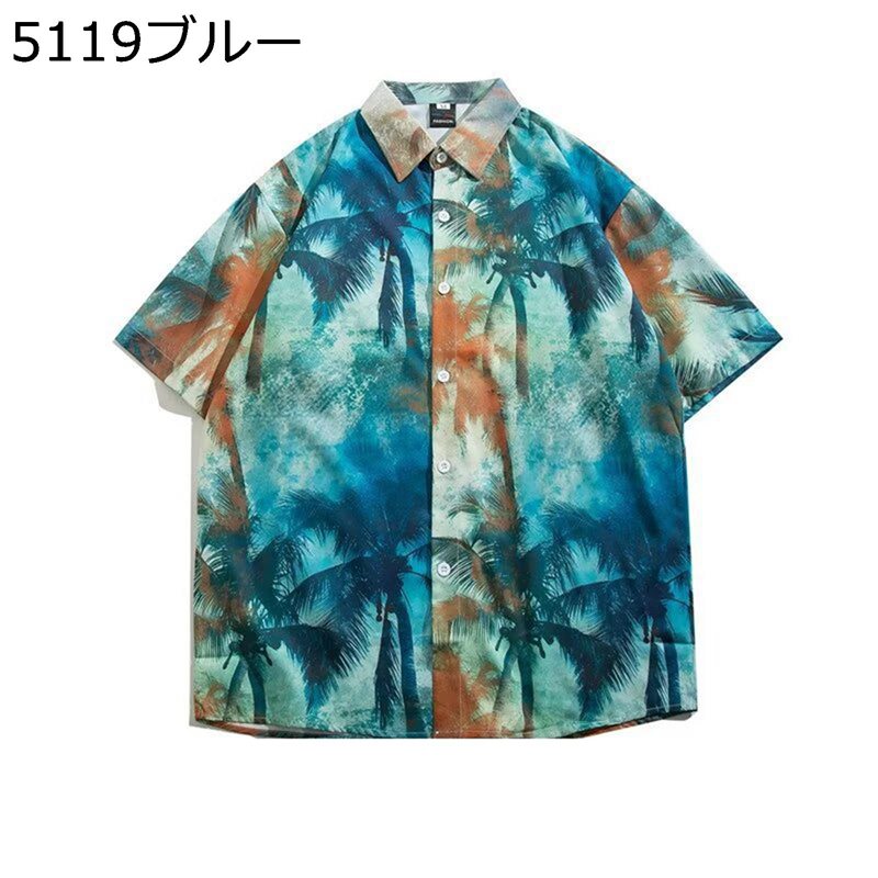 アロハシャツ 前開き シャツ ボタンダウン メンズ ビーチシャツ 男女兼用 椰子の木 半袖 夏物 オーバーサイズ プリントシャツ 吸汗透湿 uvカット 薄手 サラサラ かっこいい 海水浴 結婚式 hiphop