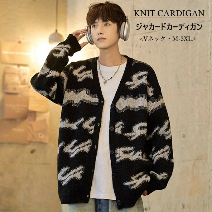 ニットカーディガン メンズ レディース 長袖 Vネック ショート丈 ジャカード 羽織り 前開き シングル ゆったり カーデ アウター 暖かい 防寒 おしゃれ レトロ かっこいい カジュアル 男性 服 ファッション 秋 冬 秋服 冬服 送料無料