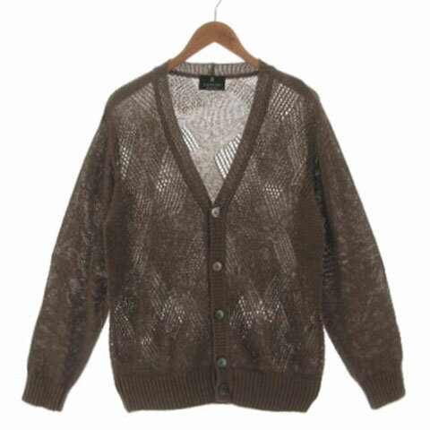 【中古】ランバンコレクション LANVIN COLLECTION 透け編みリネンブレンドニットカーディガン LA-NK-77220 ブラウン 茶 L メンズ 【ベクトル 古着】 251107