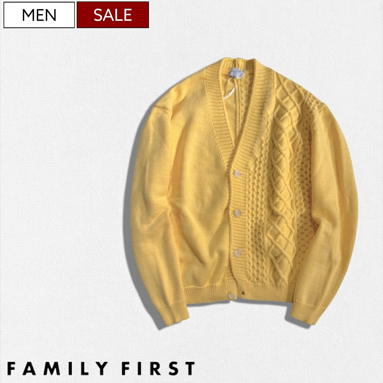 【定価75,900円(税込)】FAMILY FIRST MILANO -ファミリーファーストミラノ- 極上の着心地がクセになる1着!豊かな表情で魅せる ウール混 ケーブルニットカーディガン Crazy Pattern Knit Cardigan セーター イエロー SWF2313YW52 イタリア製 メンズ la1