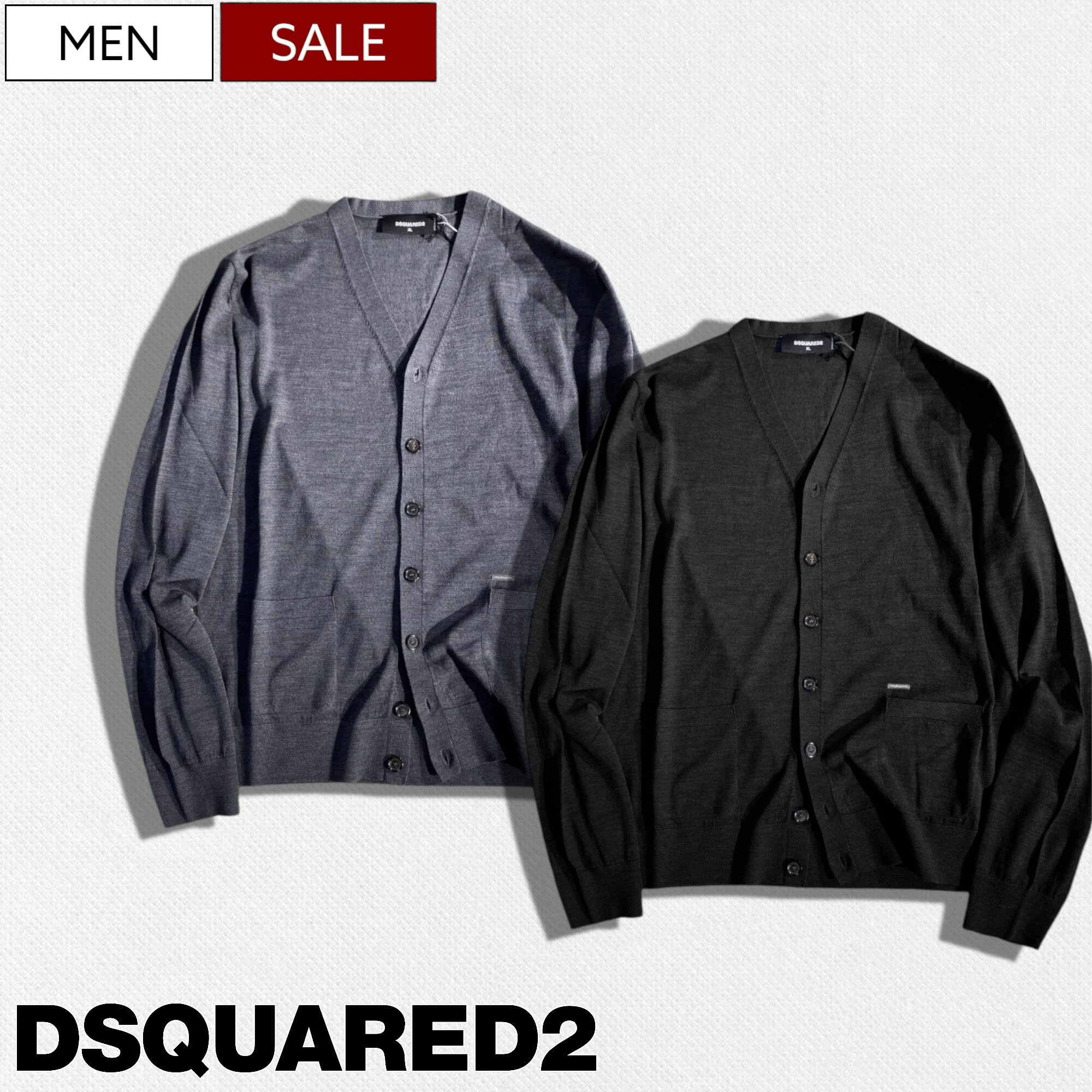 【定価69,300円(税込)】DSQUARED2 ディースクエアード ブランドロゴプレートのみのシンプルな1着♪ 美しいシルエットが光る ウールニットカーディガン ロングスリーブ 長袖 セーター Vネック 7ボタン S74HA1295 ブラック グレー メンズ la1