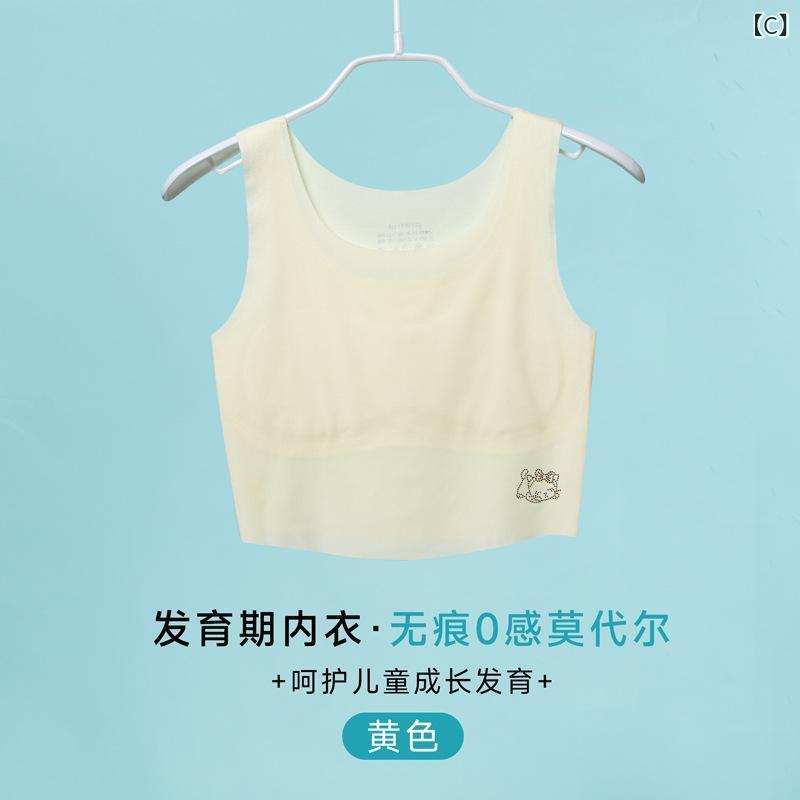 ブラジャー ガールズ モダール タンクトップ スクールインナー 中高生 小学生 ノンワイヤー フルカップ 通気 吸汗 無地 ホワイト ブルー イエロー ピンク系