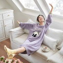 ルームワンピース レディース パンダ柄 サンゴフリース ポリエステル 裏起毛 厚手 あったか 保温 もこもこ ふわふわ ロング丈 長袖 ラウンドネック パジャマ 部屋着 秋冬 かわいい リラックスウェア 女性用