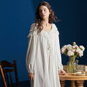 ワンピース レディース 長袖 ゆったり 綿混ニット 無地 かわいい フレンチレトロ 宮廷風 クラシカル パジャマ ルームウェア 部屋着 春秋 白 ピンク