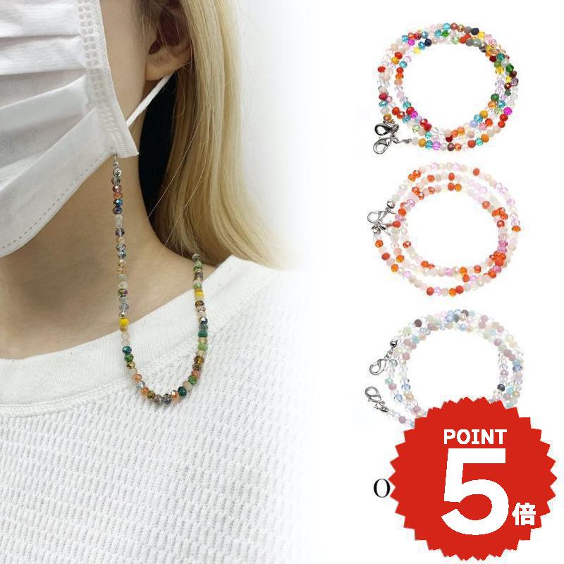 アクセサリー マスクチェーン ネックレス チェーン ストラップ レディース 韓国 お洒落 かわいい 紛失防止 デイリー カラフルビジューモチーフチェーン