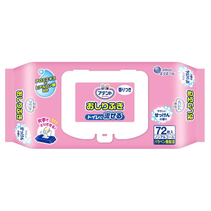 アテント 流せるおしりふき せっけんの香り 72枚 180×200mm