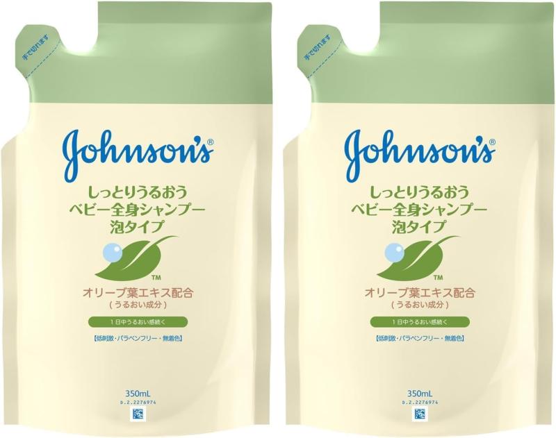 ジョンソンベビー まとめ買い 全身シャンプー ベビーシャンプー ベビーソープ 泡タイプ 詰替用 350ml×2個 子供 赤ちゃん生まれたその日から使える:低刺激・弱酸性・無着色・微香料。水と同じくらい低刺激で、目にしみにくいノーモアティアーズ処方です。全身洗える泡タイプ:1本で髪の毛から、顔、からだまで洗える全身シャンプー。赤ちゃんに優しい全身シャンプー: アレルギー/皮フ刺激性/眼刺激性テスト済み。香料の安全性を管理しているIFRAの基準に加え、更に自社基準を設けて、赤ちゃんにやさしい香料を配合しています。内容量:内容量:350mL×2個商品サイズ(幅×奥行×高さ):200×65×270mm