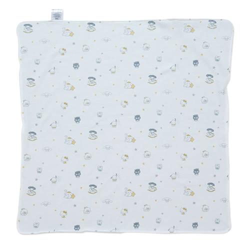 本体サイズ:約80×1×80cm。主な材料・原料:表生地:綿80%、ポリエステル20%裏生地:ポリエステル65%、綿35% 赤ちゃんを包み込みやすい正方形。フード付き※総柄デザインの部分は、商品によって柄の出方が若干異なります。 (C)2022 SANRIO CO.,LTD.(P)