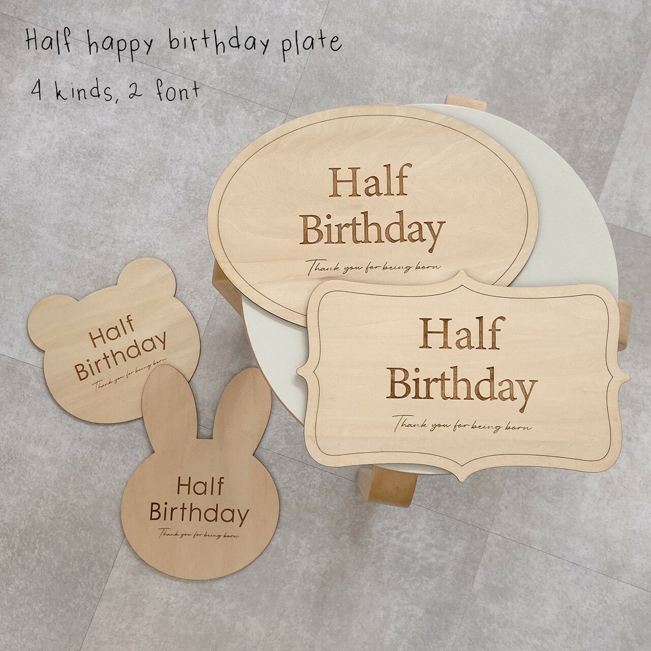 【名入れ可】Half Birthday ハーフバースデー プレート 誕生日 バースデー 木製 4種類 シンプル