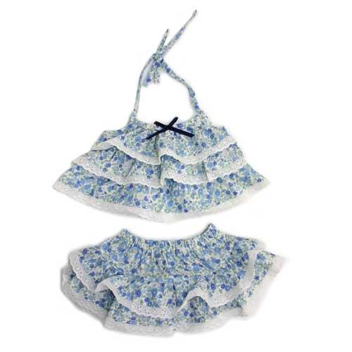 【水遊び着】ブルー花柄 80cm~95cm【素材】ブロードプリント 綿100%【洗濯】洗濯機でお洗濯できます【ご注意】水着生地ではありません。