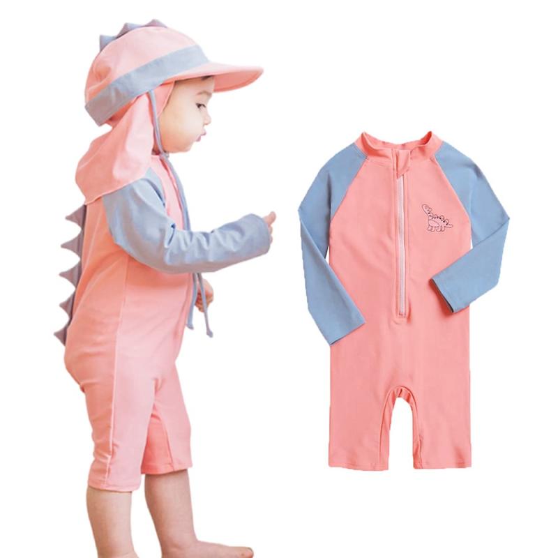 [Lucky kids] キッズ 水着 ラッシュガード 男の子 女の子 恐竜 UPF50+ UVカット 子供 ベビー スイムウェア 紫外線防止 帽子付き プール 水遊び 海水浴 保育園