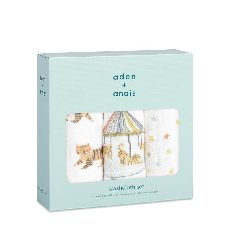 aden + anais エイデンアンドアネイ ウォッシュクロス 3枚セット 30×30cm 2022年干支 寅 タイガー モスリンコットン ループ付き 出産祝い ギフト AWCC30006J