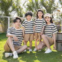 レディース メンズ ファッション 大人 子供 親子 お揃い ファミリー リンク コーデ ペア ルック ストライプ コットン ラウンドネック 夏
