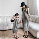 親子 コーデ ペアルック レディース 女の子 プリンセス ファッション 大人 子供 母娘 お揃い ファミリー リンク コーデ 夏 リゾート 旅行 家族写真 韓国 ストライプ ノースリーブ ワンピース