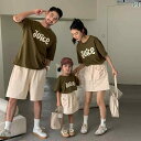 ファミリー コーデ レディース メンズ カップル ファッション ペアルック 親子 お揃い リゾート 旅行服 家族写真 コーデ 通勤 カジュアル Tシャツ ラウンドネック プルオーバー 夏