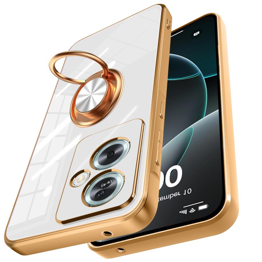 OPPO A79 5G 用 ケース リング付き 耐衝撃 ストラップホール付き メッキ加工 米軍MIL規格 透明 衝撃吸収 スタンド機能 おしゃれ T