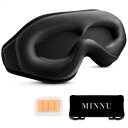 MINNU アイマスク 睡眠用 3D立体型 目隠し 安眠 遮光率99.99 通気性 圧迫感なし 柔らかい シルク質感 低反発素材 サイズ調整可能 軽量 旅行/出張/昼寝に最適 快眠 グッズ 男女兼用 耳栓セット/収納袋付 ブラック