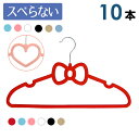 ハート リボン 滑らないハンガー 10本セット (キュートなハート型とガーリーなリボン型から選べる!傾けても滑らない魔法のハンガー) 衣類 洋服 和服 収納 コンパクト スリム 起毛 クローゼット 壁掛け 薄い 薄型 軽い 軽量 かさばらない ワンピース Yシャツ トップス
