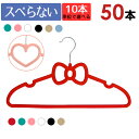 ハート リボン 滑らないハンガー 50本セット (キュートなハート型とガーリーなリボン型から選べる!傾けても滑らない魔法のハンガー)10本単位でカラーを選べる 衣類 洋服 和服 収納 スリム 起毛 クローゼット 壁掛け 薄い 薄型 軽い 軽量 かさばらない ワンピース Yシャツ