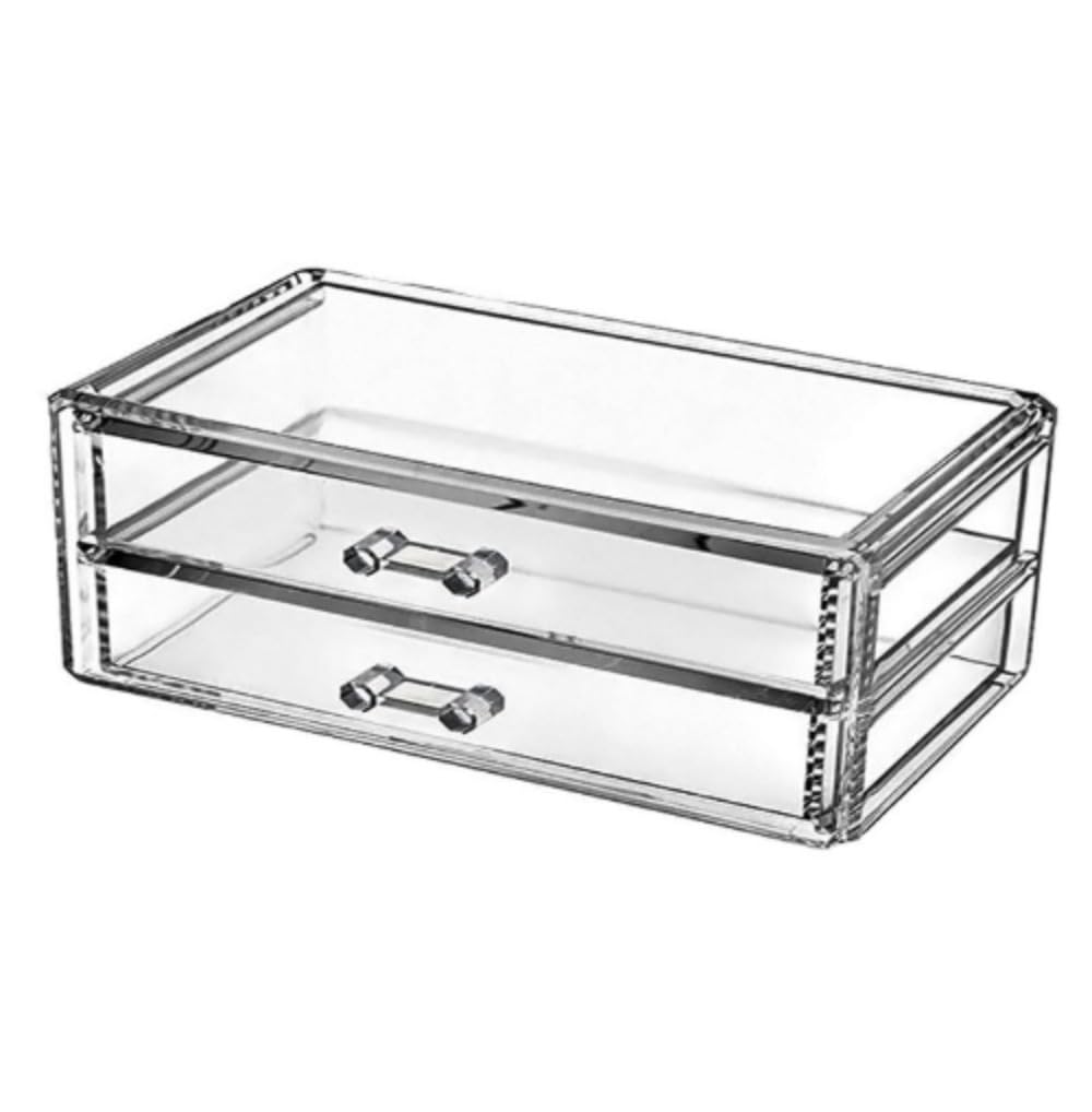 透明化粧台収納ボックス デスクトップ引き出し スキンケア製品 メイクブラシ化粧台 アクリル収納ラック ジュエリーボックス イヤリングボックス 収納 小物収納 ファッション (透明な二層小引き出し)