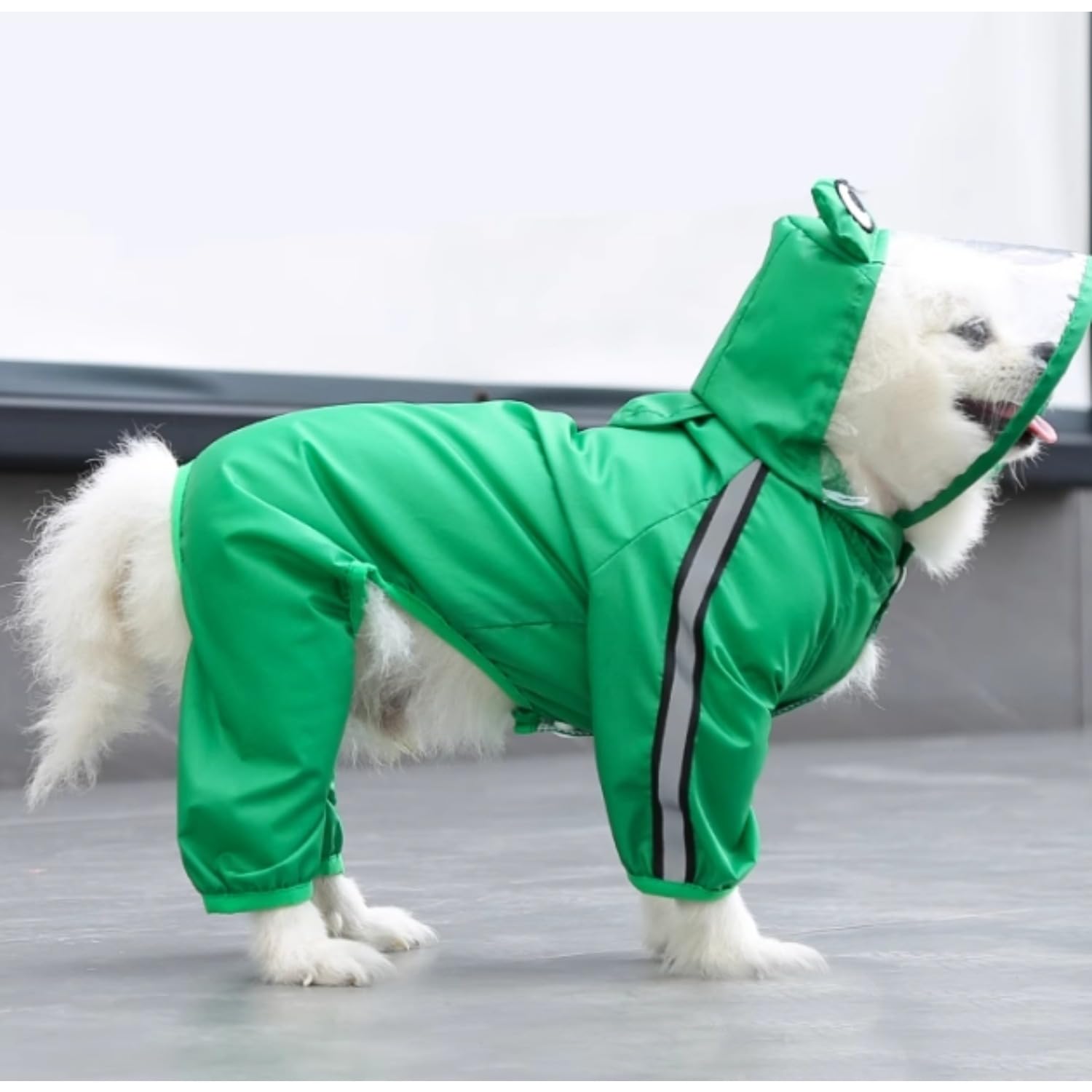ペット 梅雨 履きやすい 反射ベルト 引きずる穴 フード付き 通気性 完全防水 耐久性 快適 防風 防水 アウトドア 犬 散歩 かわいい 子犬 中型犬 カエル グリーン