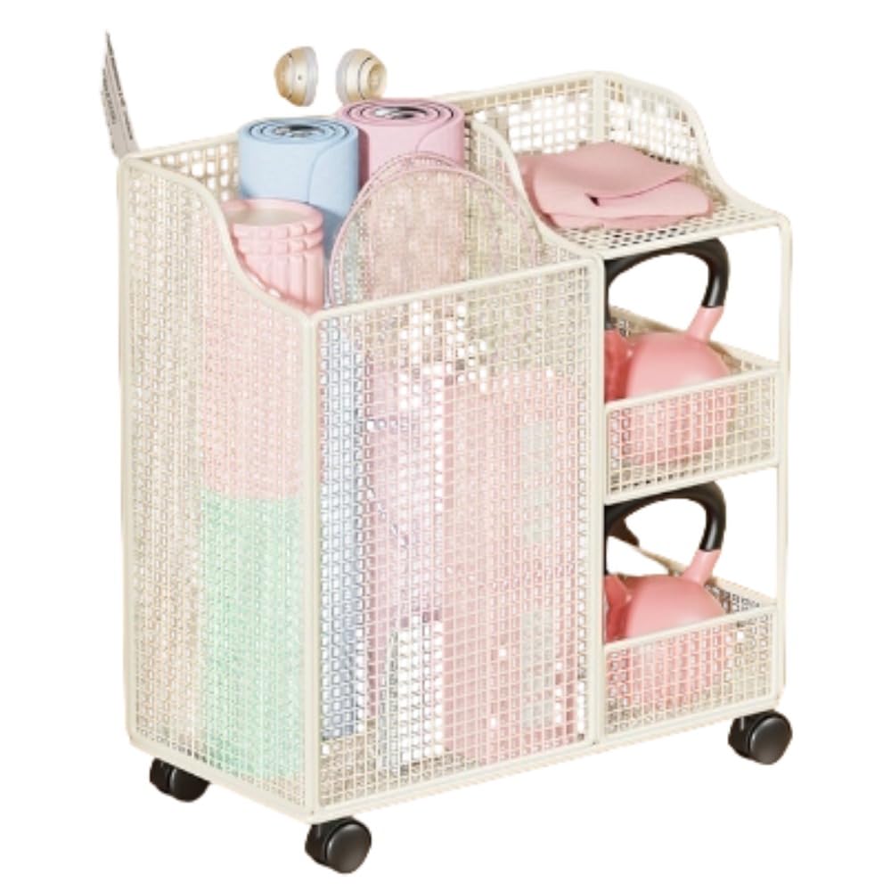 スポーツツール収納ラック ヨガマット収納バスケット 家庭用 車輪付き 可動式 フィットネス機器収納ボックス (ブラック)