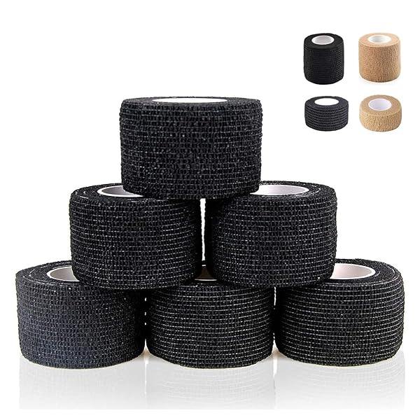 包帯 弾性包帯 4スペック 自着式 通気性 敏感肌対応 スポーツ用 家庭用 弾性 伸縮包帯 アスレチックテープ 多機能 巻きやすい 不織布製 (黒色 2.5cm幅 × 4.5m)