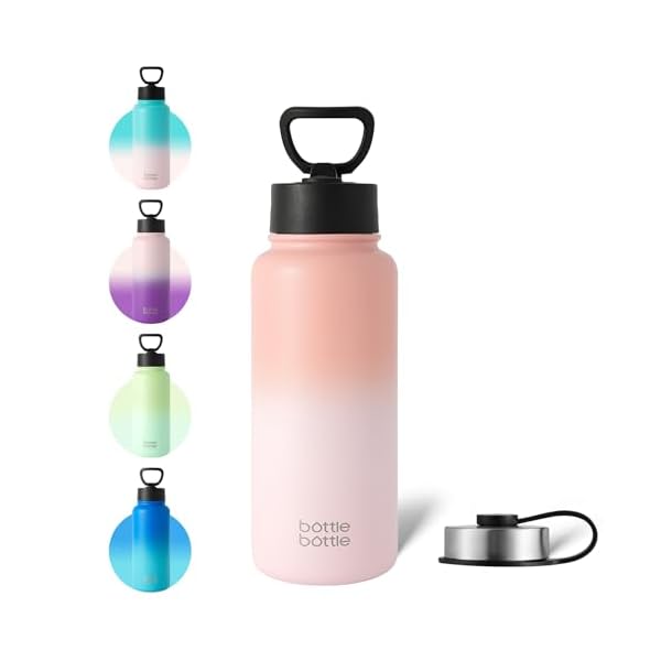 1リットル 水筒 ステンレス ウォーターボトル 女の子 直飲み ストロー付き 保温保冷 二重構造 真空断熱 持ち運び スポーツ アウトドア ピンク