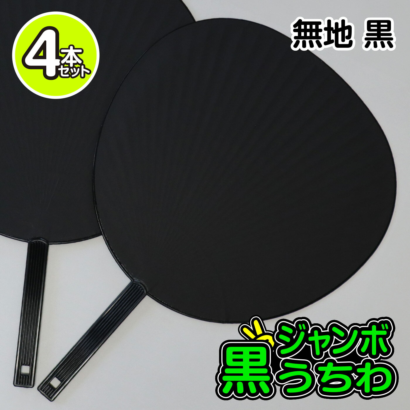 【4本セット】 黒 無地 ジャンボうちわ 応援グッズ 推し活 ファンサ コンサート スポーツ観戦 ライブ 大きいサイズ ツヤ無し 手づくり 大判うちわ