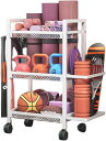 コンパクトジム収納ラック - ヨガマット/ダンベル/ケトルベル/レジスタンスバンド対応/バランスボール 大容量スポーツ器具収納スタンド 簡単組立 省スペース ホイール付き 移動可能 トレーニング用品整理棚 家庭用ジム 収納ボックス フィットネス小物入れ