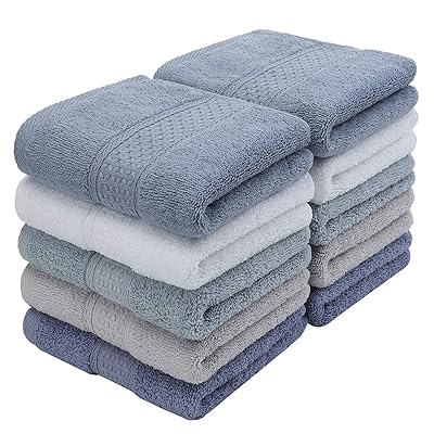 TMVOK フェイスタオル 10枚セット 無地 タオル おしゃれ 北欧風 綿100% 吸水速乾 33*74cm 抗菌防臭 大判 家庭用、ホテル、業務用、スポーツなどにも最適 四季通用(グレー 2枚 + ダークブルー 2枚 + ライトブルー2枚 + ホ