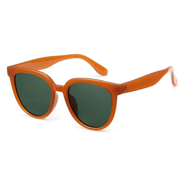シクサズ サングラス レディース ボストンフレーム 偏光レンズ UVカット紫外線対策 小顔効果 釣り/運転/登山/旅行/スポーツ用 おしゃれ(1080グリーンレンズ&オレンジフレーム)