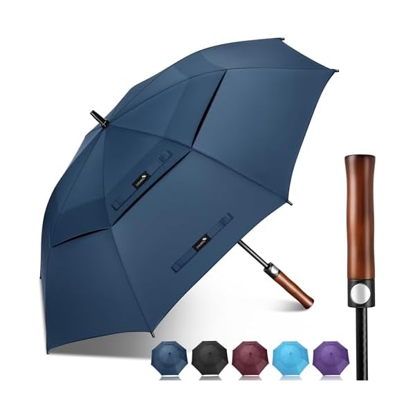 長傘 ゴルフ傘 8本骨 大きい 68/62/5468インチ 木製ハンドル おしゃれ 二層構造 超撥水 耐風 ワンタッチ 丈夫 強風豪雨·梅雨対策 紳士傘 晴雨兼用 スポーツ観戦 メンズ レディース 収納ポーチ付き