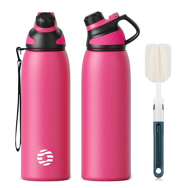 FJbottle 水筒 1リットル 真空断熱 スポーツボトル 保温 保冷 スポーツ飲料対応 1l すいとう 広口 洗いやすい ステンレスボトル マグボトル 洗浄用スポンジ付き 女の子 男の子 おしゃれ 大人 子供 アウトドア ホットピンク