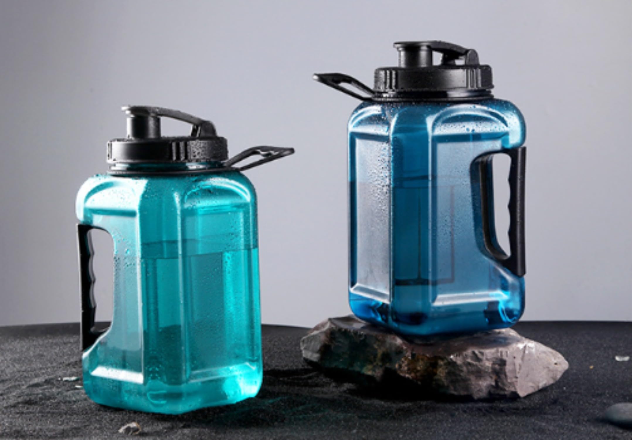 水筒 2400ml ウォーターボトル 大容量 ドリンクボトル プラスチック 直飲み BPAフリー 軽量 漏れ防止 携帯便利 スポーツ ランニング 自転車 登山用 アウトドア用 オシャレボトル ガロンボトル おしゃれ クリアボトル ハンドル付き (2400ml,ダークブルー)