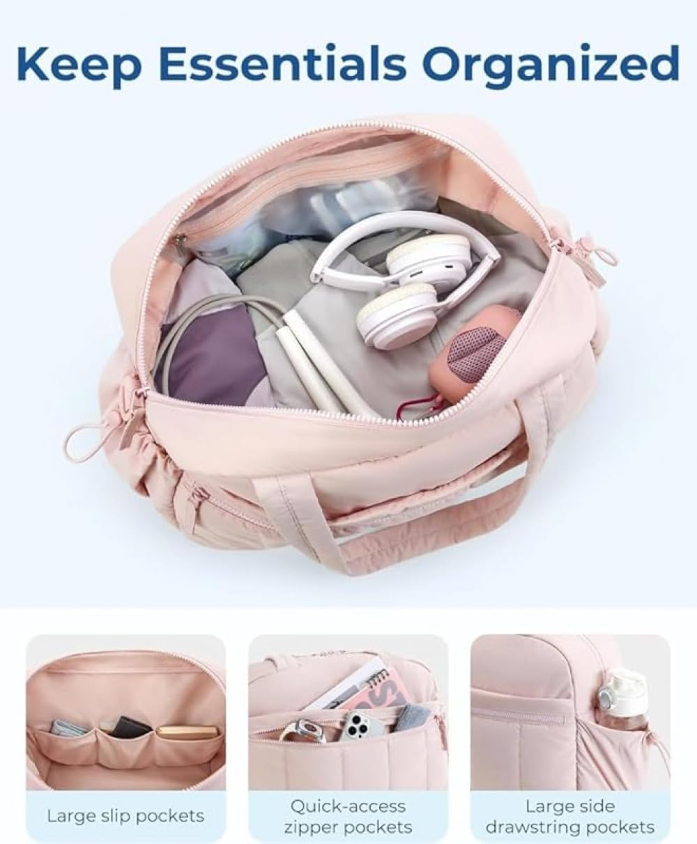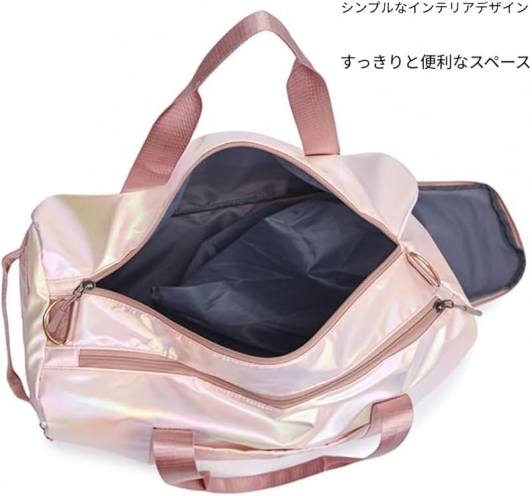 ダッフルバッグ 防水 トートバッグ エブリシングバッグ 軽量 大容量、ポータブル 機内持ち込みジムバッグ ヨガバッグ 病院用ホールド ウェットポケット付き ヨガ 旅行 水泳 スポーツ用 ママバッグ、乾湿分離 (ピンク)
