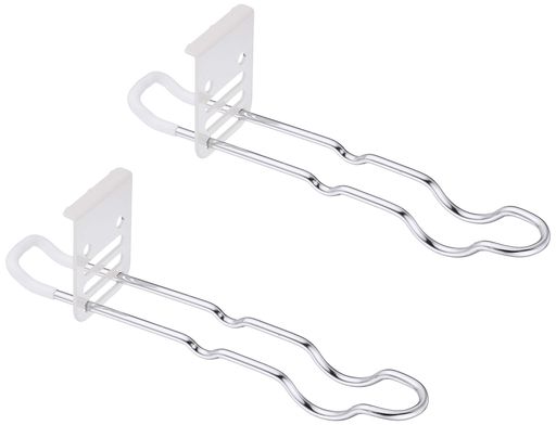 室内の敷居に引っ掛けて使用する物干し竿掛けです。花粉対策・部屋干し・室内物干しに大人気!!■入数: 4個入■特徴: ネジや釘を使わずに室内使える物干しですよ♪取付面を挟むだけで簡単に洗濯物等を掛けられます。賃貸にお住まいの方や家にネジ穴を付けたくない方には、お勧めです!■材質: 本体 鉄線/クロームメッキ(キズ防止樹脂付)座金 鉄/塗装■製品の耐荷重は3kgです■使用ポール径: 直径32ミリ以下物干し掛け。取付けはワンタッチでとても簡単、ネジや釘・接着剤を使用しません。2つ使用すると、ポールをかける事ができます。全長: 220mm。入り数: 2個入。