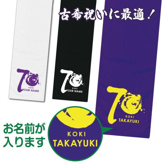 古希 タオル 古希祝い 名入れ 女性 男性 紫 古稀 プレゼント 名前入り お祝い マフラータオル 20cm×110cm 綿100% 筆文字
