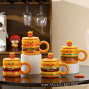 マグカップ かわいい ハンバーガー 白磁 蓋 スプーン付き 立体 耐熱 レディース メンズ 子供 ギフト プレゼント(x4)