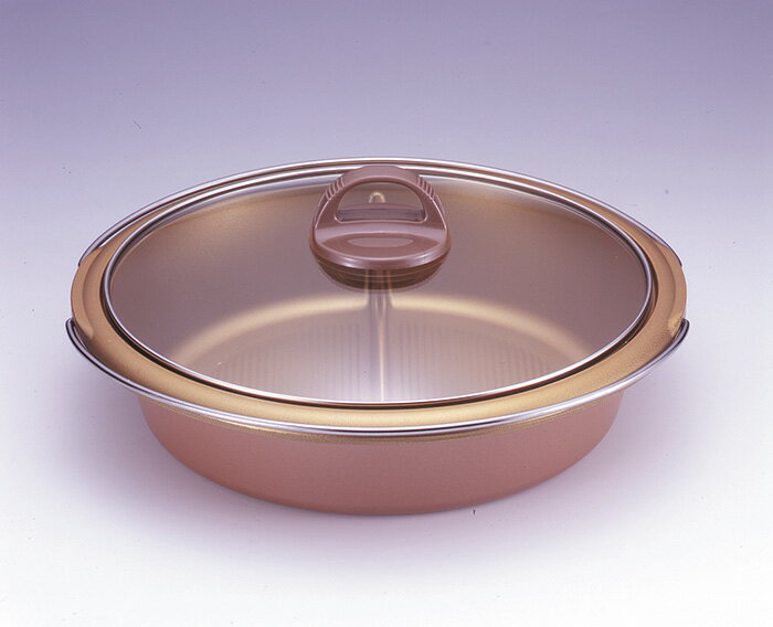 真ん中に仕切りのある仕切り鍋。すき焼きにしゃぶしゃぶなど贅沢な2色鍋が楽しめます。下揚げ用と仕上げ用、衣をカラッときれいに仕上げる二度揚げにも最適。 ≪ 商品詳細 ≫ 材質:アルミニウム合金(内面:フッ素樹脂加工) サイズ:約30×高さ7cm(直径約26cm) 重量:約1500g 生産国:日本製 ※IH(電磁調理器)はご使用いただけません。