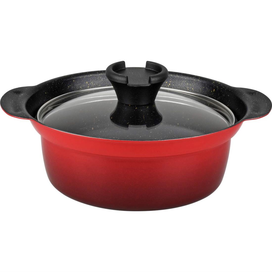 【11/25|BLACK FRIDAY&5と0の日|ポイントアップ中】和平フレイズ 土鍋より軽くて丈夫 マーブルコート 卓上鍋 18cm 6号サイズ 1~2人用 IH・ガス対応 ガラス蓋付 紅丈膳 RB-1673