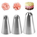 絞り口金 ロシアンボールノズル カップケーキデコレーション用口金 花型作成器 製菓用品 ステンレス フラワー リフター ケーキデコレーション ベーキングツール(3個セット)
