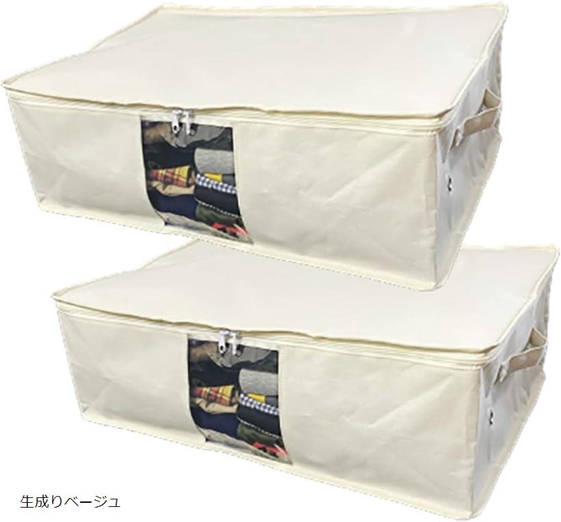 衣類収納 ケース 寝具 収納袋 衣装ケース 押入れ クローゼット ベッド下 綿麻生地の内側をコーティング 適度なハリ感で収納しやすい 使わない時は小さく畳める 通気性を重視したハトメ穴付 (生成りベージュ, 約60x40x20cmx2枚組)