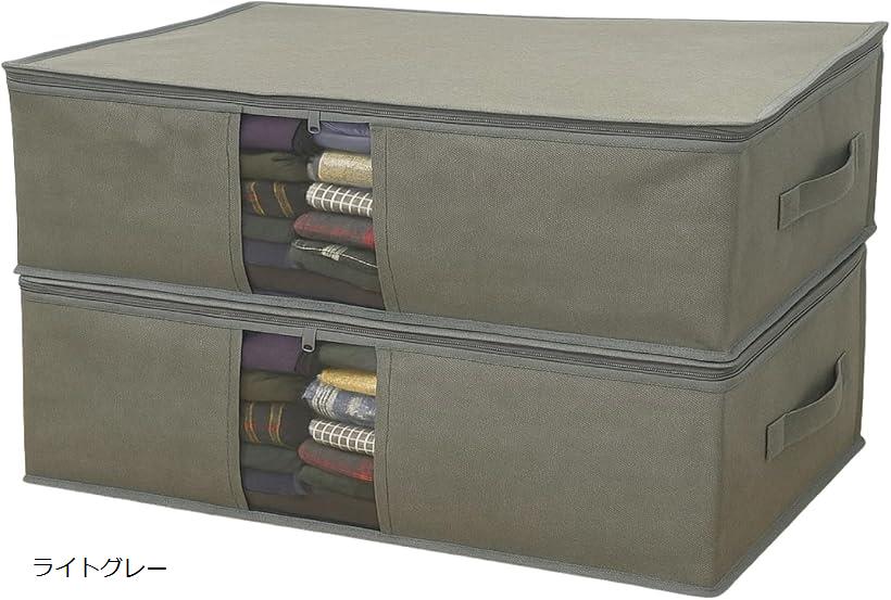 衣類収納 ケース 寝具 収納袋 衣装ケース 押入れ クローゼット ベッド下 綿麻生地の内側をコーティング 適度なハリ感で収納しやすい 使わない時は小さく畳める 通気性を重視したハトメ穴付 (ライトグレー, 約60x40x20cmx2枚組)